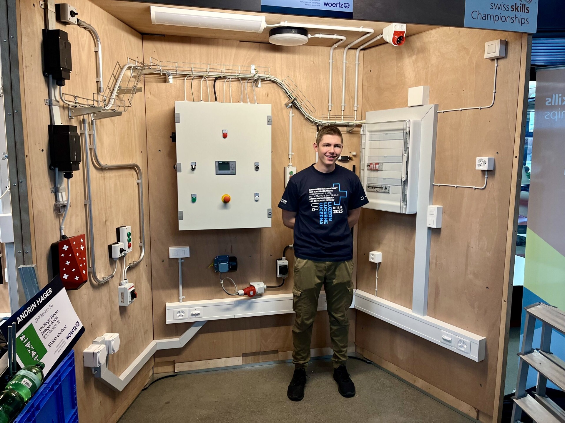Unser Mitarbeiter Andrin Hager hat sich an den kürzlich durchgeführten Schweizerischen Berufsmeisterschaften der Elektro-Installateure im Verkehrshaus in Luzern unter den Augen vieler Besucher erfolgreich in Szene gesetzt. Der vom EIT.swiss durchgeführte Wettbewerb dauerte vom Mittwochmorgen bis am Samstagmittag.
